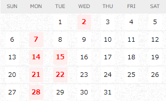 ☆カレンダーで見るお休みのお知らせ